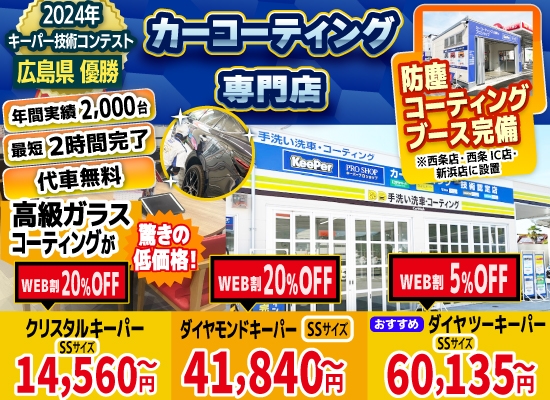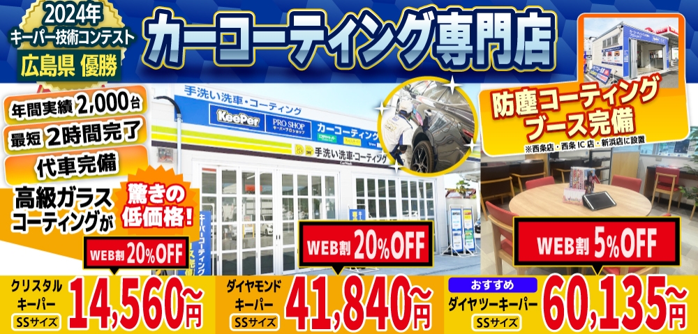東広島 尾道で1.4万円のキーパーカーコーティング